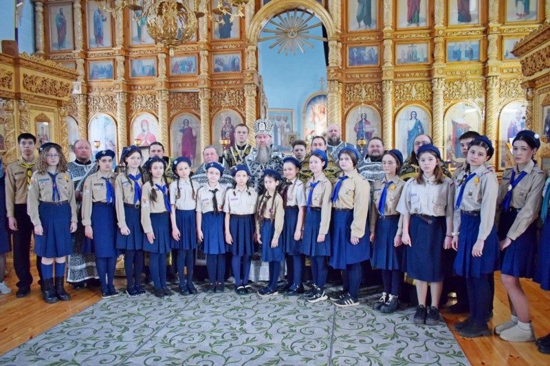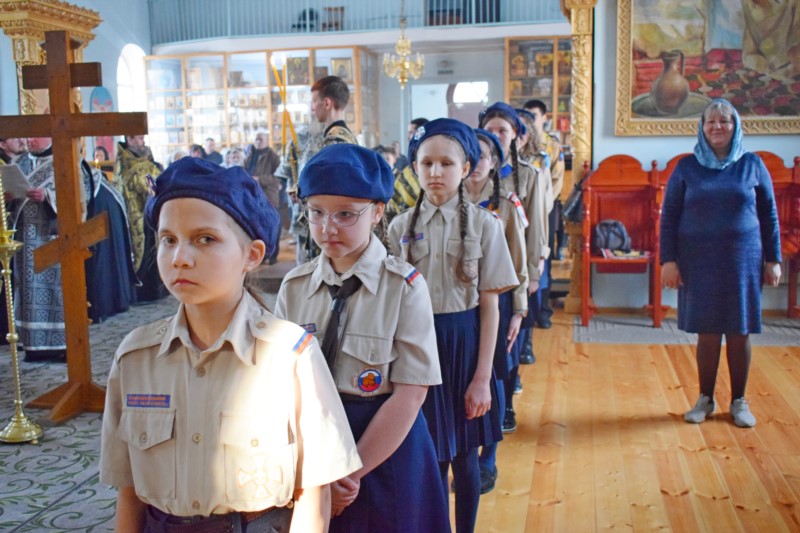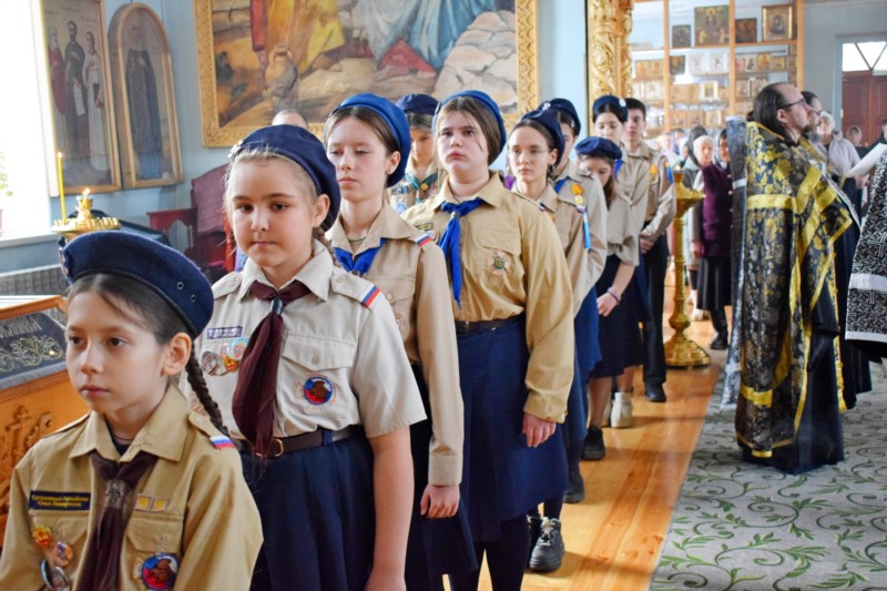 За богослужением молились воспитанники 45-отдельного сводного отряда организации юных разведчиков имени священномученика Германа (Кокеля) при храме иконы Божией Матери "Всех скорбящих радость" города Канаш и многочисленные прихожане.