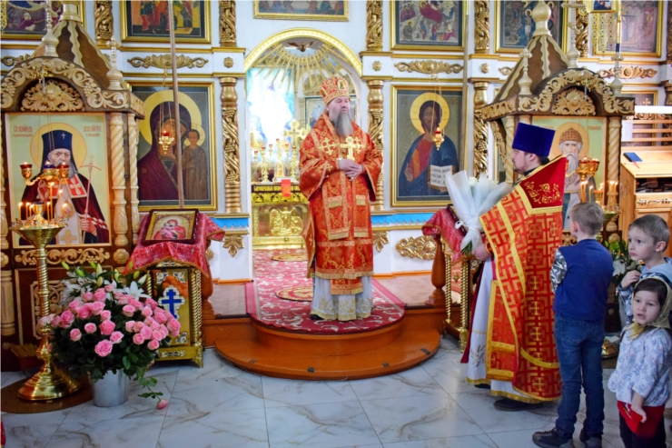 В ответном слове епископ Стефан по благодарил настоятеля и собравшихся на богослужение богомольцев со светлым праздником Пасхи Христовой и святых жен мироносиц, и преподал каждому Архипастырское благословение.