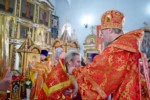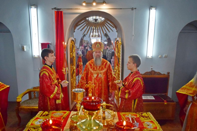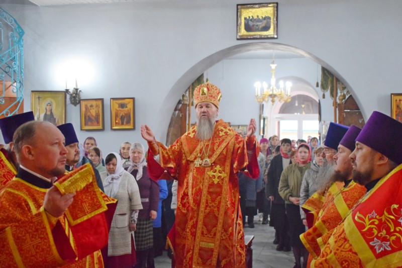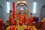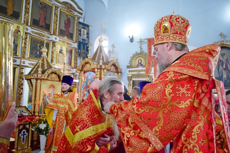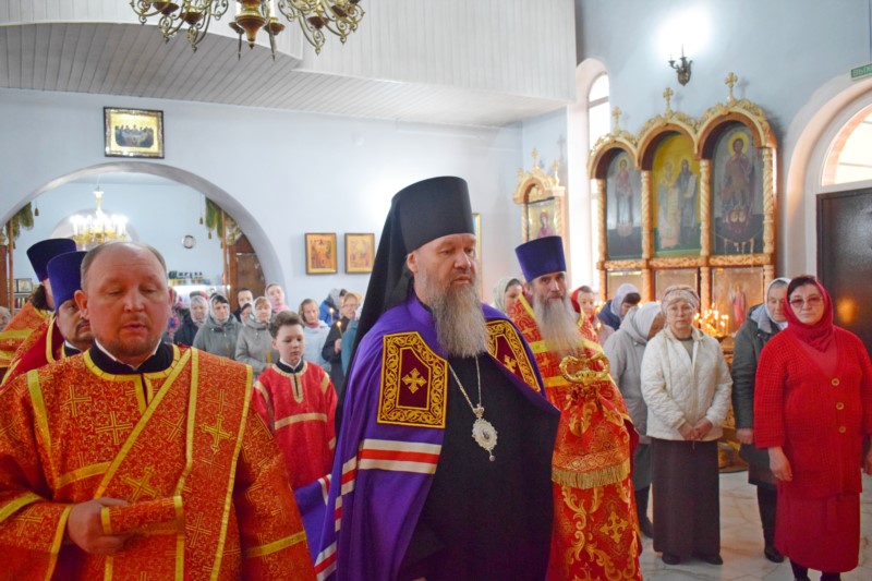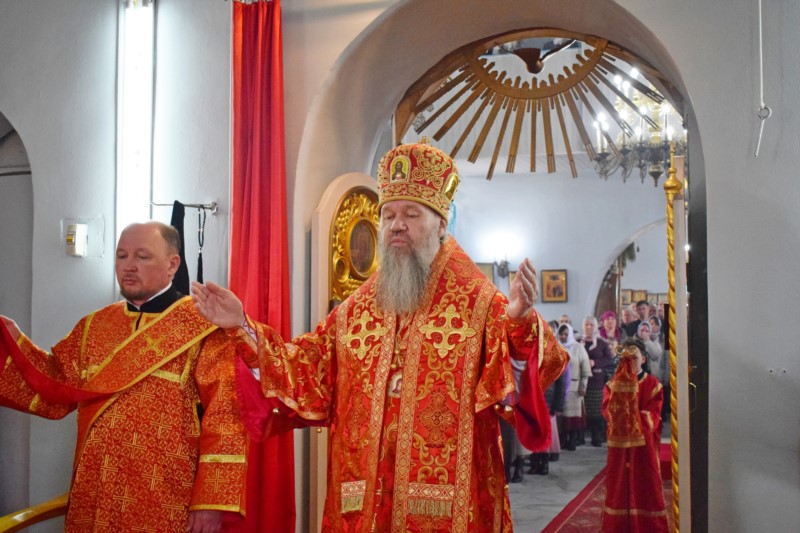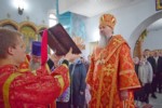 На малом входе по благословению Святейшего Патриарха Московского и всея Руси Кирилла, Его Преосвященство удостоил правом ношения Креста с украшениями настоятеля храма Преображения Господня с. Чурачики Комсомольского М.О протоиерея Георгия Левшина.
