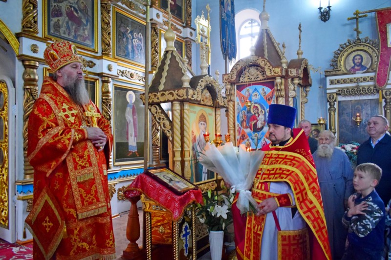 По завершении Божественной литургии Владыку приветствовал, благочинный III округа Комсомольского муниципального округа настоятель храма Вознесения Господня села Комсомольское иерей Сергий Скворцов.