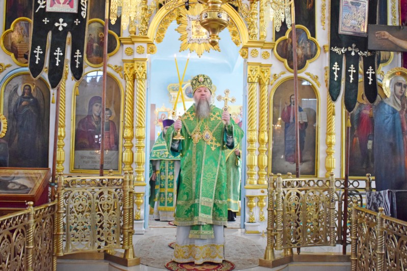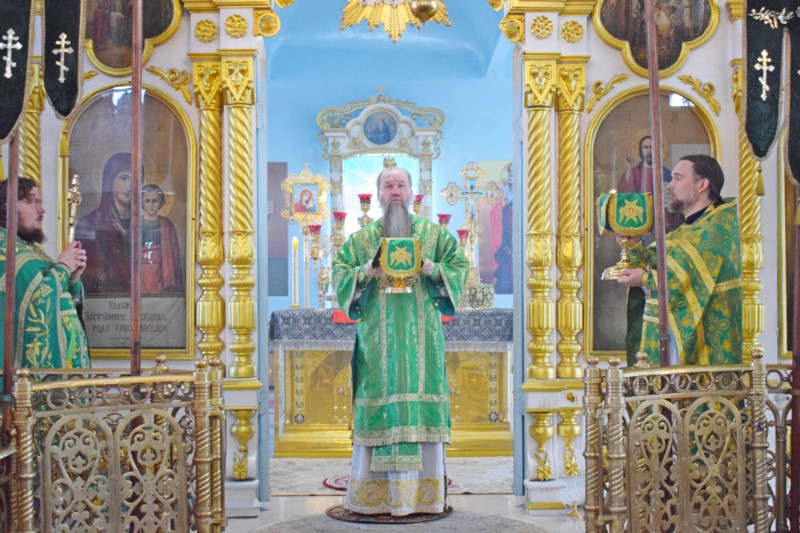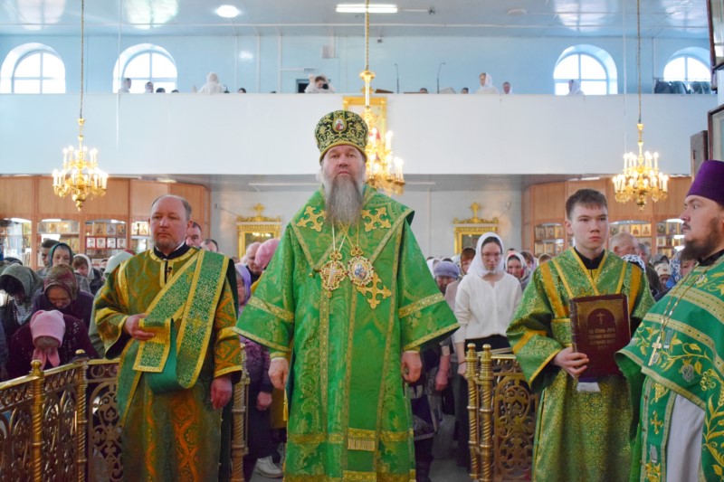 Правящему Архипастырю сослужили клирики кафедрального храма: благочинный I округа Канашского М.О протоиерей Серафим Атаманенко, заведующий канцелярией Канашской епархии иерей Сергий Карсканов.