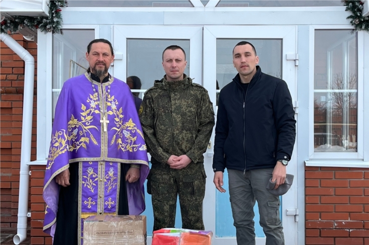 Гуманитарный груз освятил благочинный V округа Канашской епархии, настоятель Храма Тихвинской иконы Божией Матери с. Мусирмы протоиерей Леонид Ермолаев. Им был отслужен и молебен о путешествующих и о победе Русского воинства.