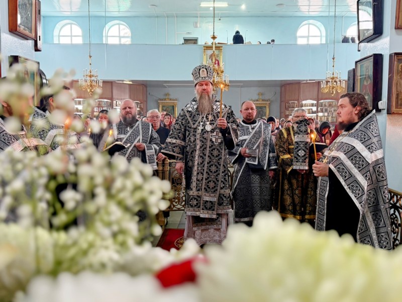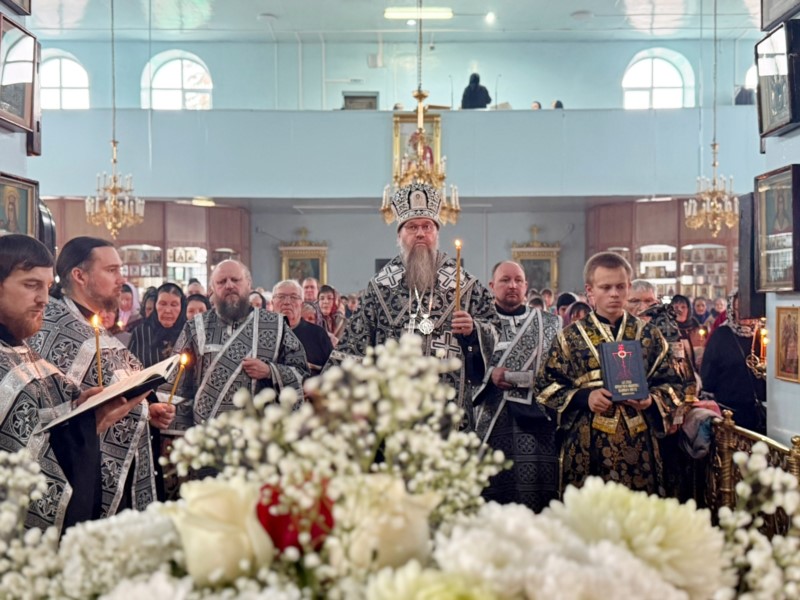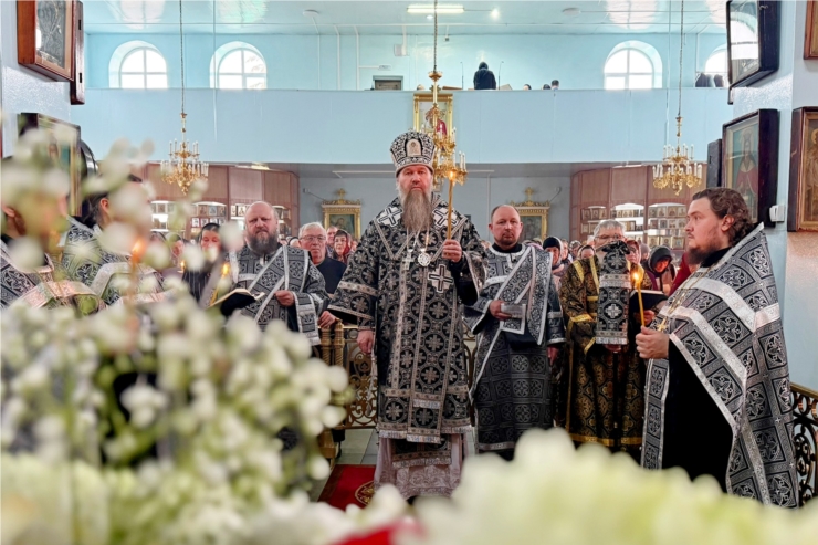 10 апреля 2026 года, в Великий Пяток — день, посвященный воспоминанию Святых спасительных Страстей Господа нашего Иисуса Христа, глава Канашской епархии Преосвященнейший Стефан епископ Канашский и Беловолжский, совершил вечерню с выносом Плащаницы Спасителя в кафедральном храме святителя Николая города Канаш.