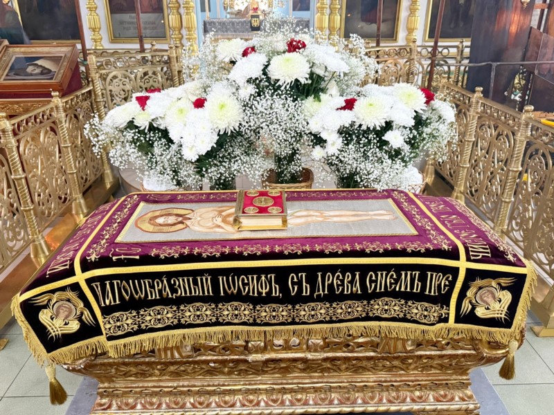В завершение духовенство и молящиеся совершили молитвенное поклонение перед Плащаницей.