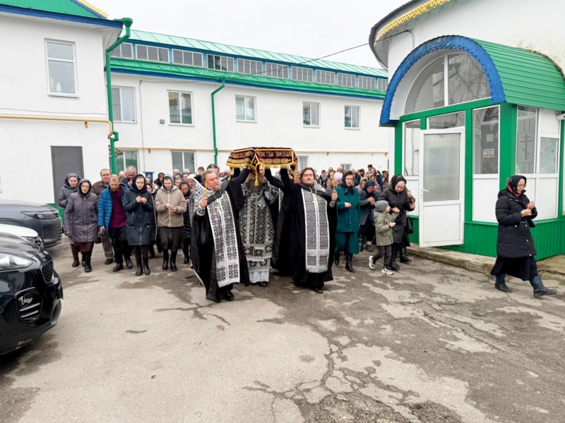 На середине храма перед святой Плащаницей священнослужители прочитали 17-ю кафизму с похвалами. После пения Великого славословия Плащаница была обнесена вокруг храма с пением погребального «Святый Боже...».