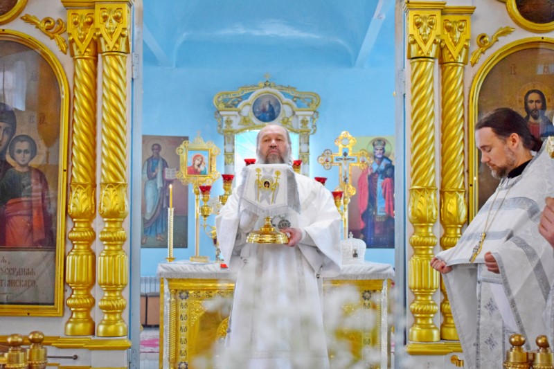 Правящему Архипастырю сослужили клирики кафедрального храма: благочинный I округа Канашского М.О протоиерей Серафим Атаманенко, заведующий канцелярией Канашской Епархии иерей Сергий Карсканов, иерей Георгий Павлов.
