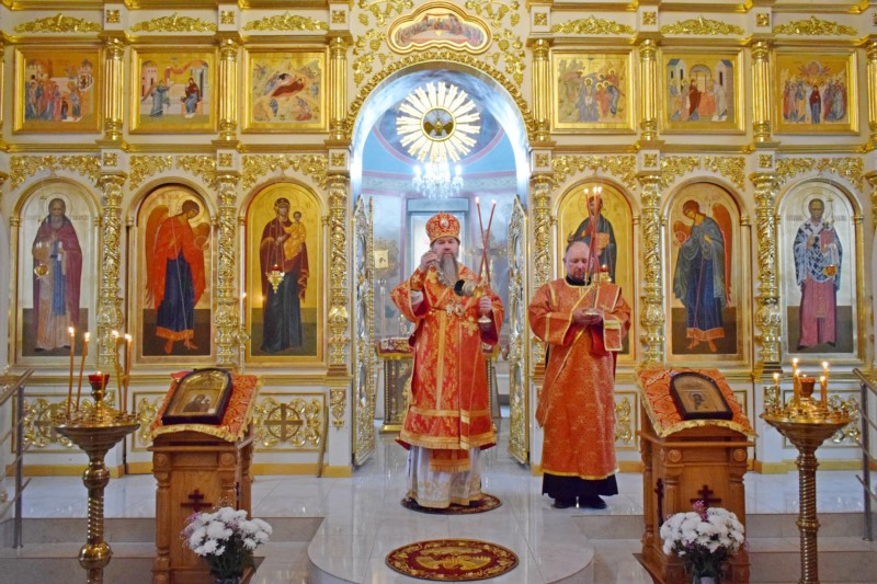 Затем Преосвященнейшего владыку приветствовал настоятель храма протоиерей Иоанн Николаев. Отец настоятель поблагодарил Его Преосвященство за богослужение и молитвы.