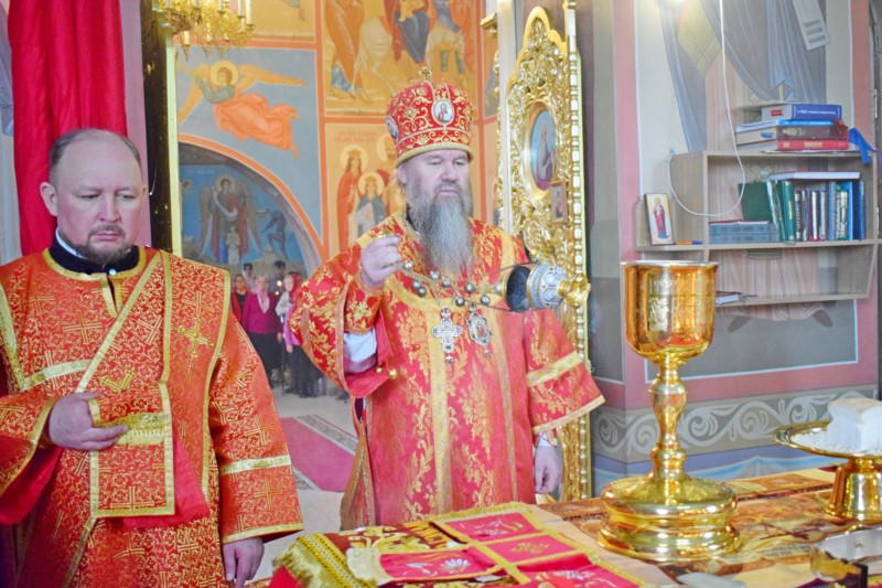 По запричастном стихе по благословению Преосвященнейшего владыки, иерей Константин Никоноров произнес проповедь.