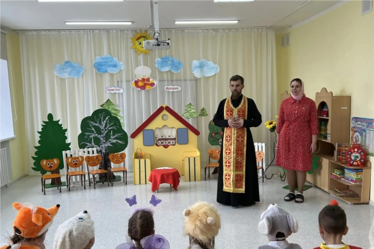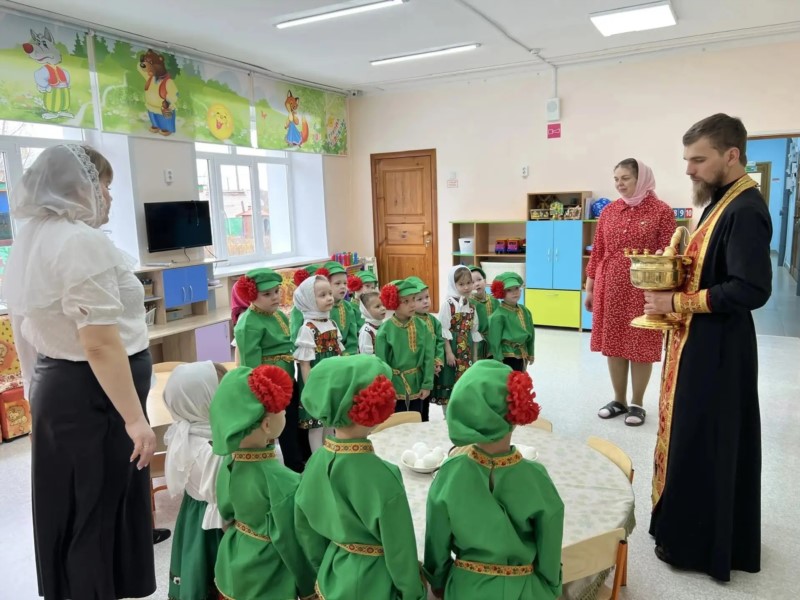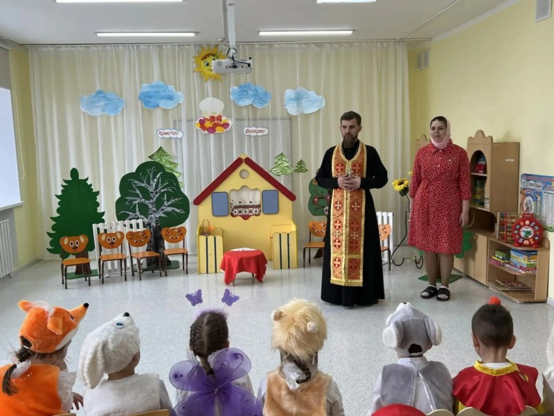 В светлые дни Пасхи настоятель храма Архангела Михаила в пос. Урмары иерей Елисей вместе с матушкой Анастасией посетили воспитанников детского сада «Зоренька». Священнослужитель и матушка обратились к ребятам с приветственным словом.