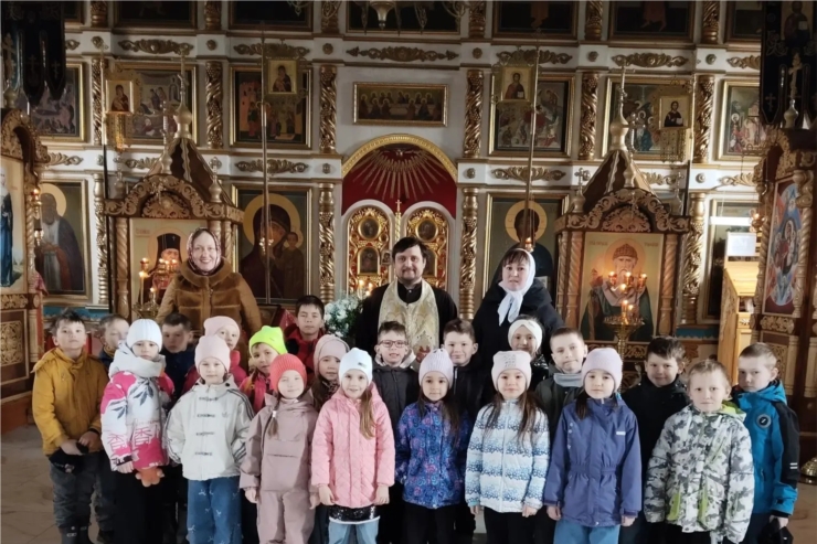 Благочинный Комсомольского муниципального округа настоятель данного храма иерей Сергий Скворцов рассказал юным гостям о значении храма и внутреннем устройстве, о правилах поведения в церкви, познакомил с иконами. Дети внимательно слушали батюшку и задавали вопросы.