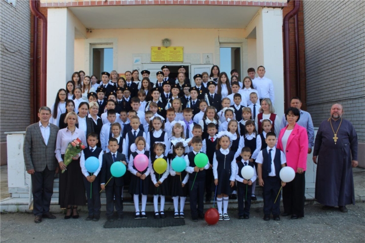 В числе пришедших поздравить учеников с первым звонком был настоятель храма святителя Николая Чудотворца с. Ухманы Канашского муниципального округа протоиерей Александр Иванов.