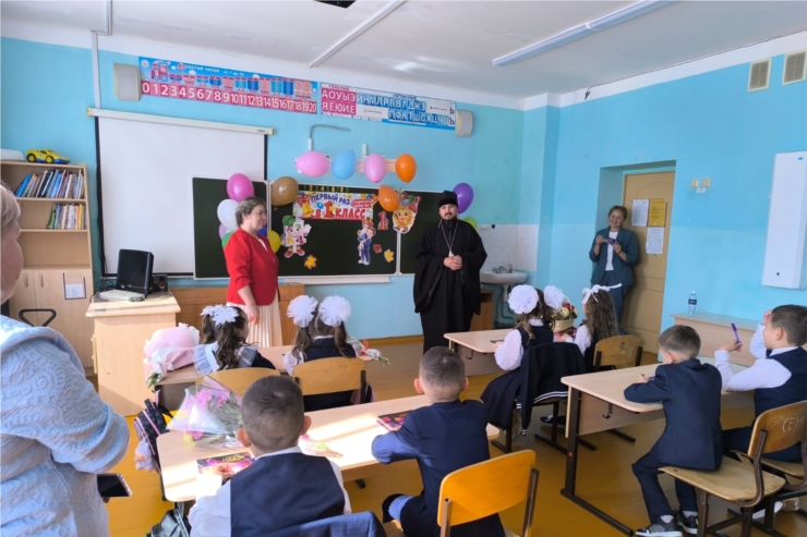 Он поздравил каждого с началом учебного года, пожелав крепости сил и радости в постижении нового. Отец Василий благословил школьников на предстоящие труды.И в напутственных словах напомнил , что важно помнить при добыче знаний, дети не забывали о главном — о любви, милосердии и вере.