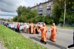 Участники шествия прошли по улицам города от кафедрального храма святителя Николая до храма святых благоверных князя Петра и княгини Февронии Муромских г. Канаш.