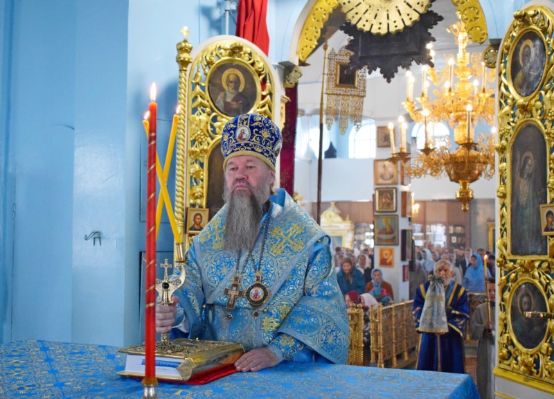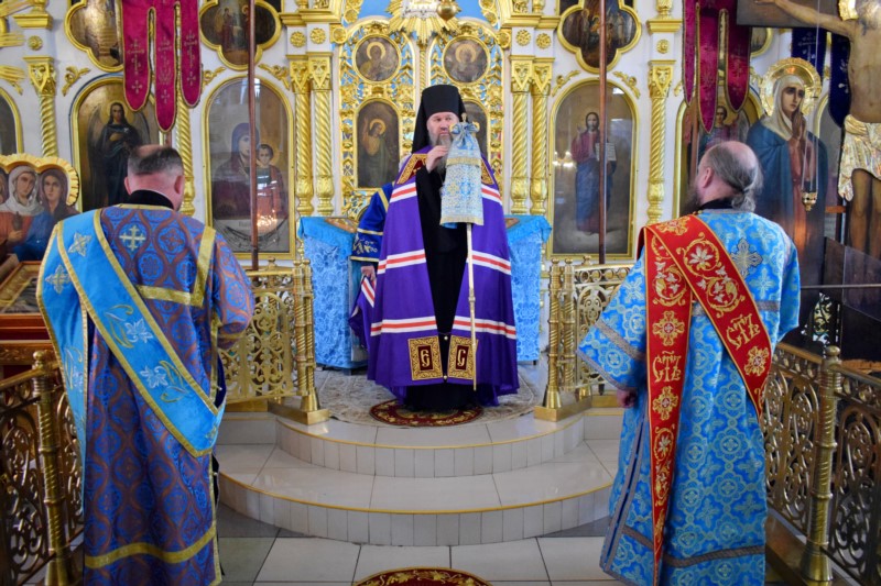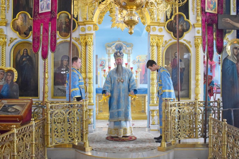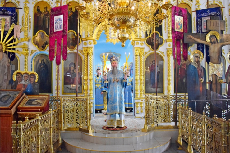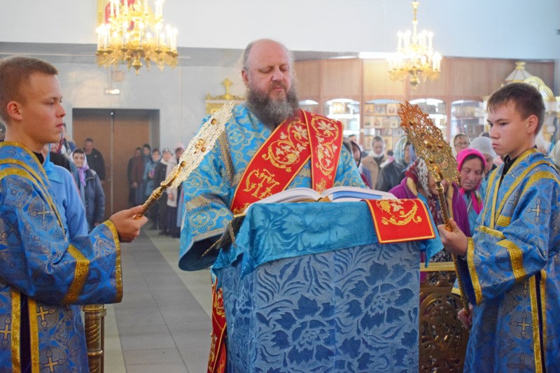 После чтения Евангельского зачала и сугубой ектенией были произнесены особые молитвословия о Святой Руси, затем владыка прочитал молитву.
