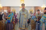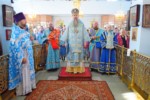 По заамвонной молитве Его Преосвященство с духовенством совершили славление празднику перед святым образом.