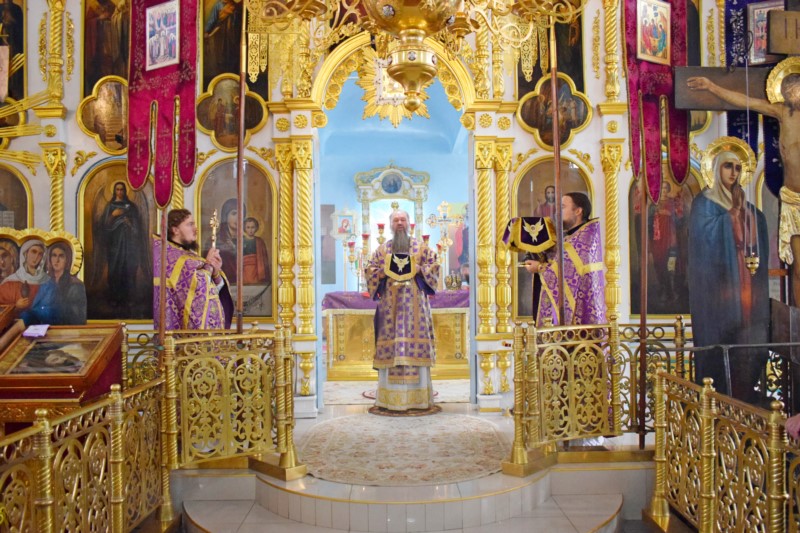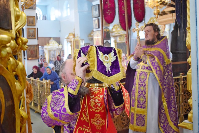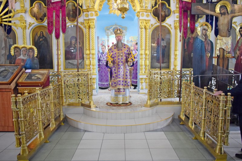 По завершении богослужения Преосвященнейший владыка обратился к участникам богослужения с Архипастырским словом о Кресте Господнем. Затем Архипастырь преподал каждому прихожанину благословение.