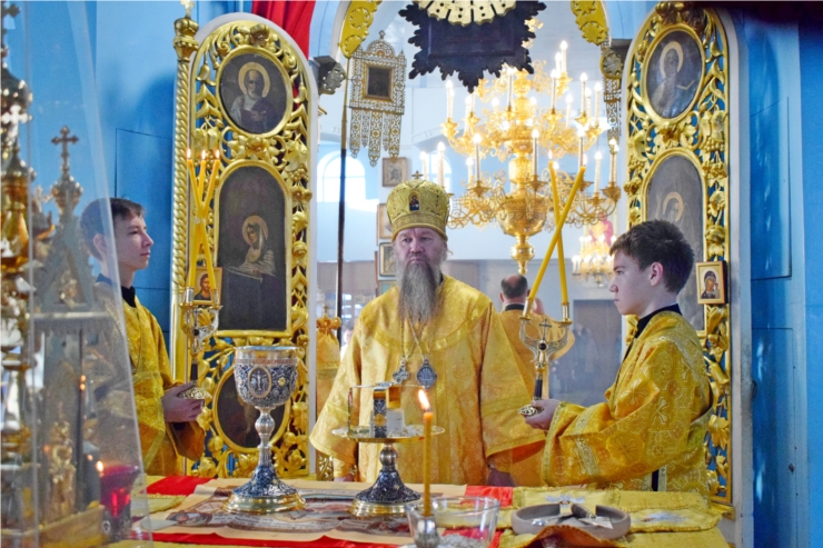 На сугубой ектении были произнесены особые прошения о Святой Руси, по сугубой ектении владыка совершил молитву.