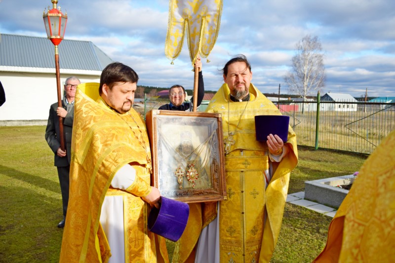 По заамвонной молитве было совершено молебное пение святителю Герману Казанскому и Крестный ход. По окончании Литургии были возглашены уставные многолетия.