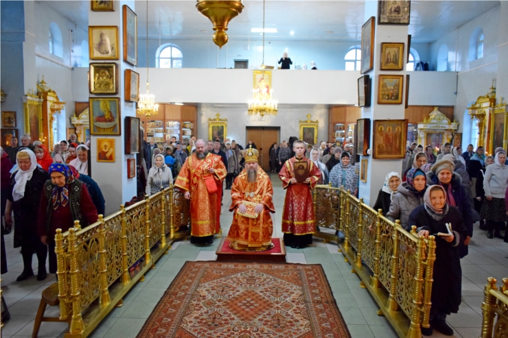 Правящему Архипастырю сослужили клирики кафедрального храма, благочинный I Канашского Муниципального округа протоиерей Серафим Атаманенко, заведующий канцелярией Канашской епархии иерей Сергий Карсканов и иерей Георгий Павлов.