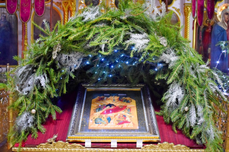 По заамвонной молитве перед праздничной иконой был совершен чин славления праздника Рождества Христова.