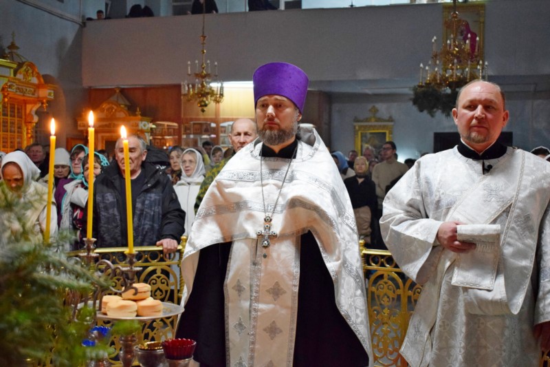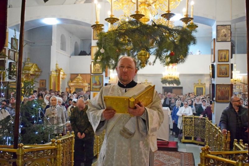 В начеле утрени протоиерей Серафим Атаманенко огласил Рождественское послание митрополита Чебоксарского и Чувашского Савватия, Главы Чувашской митрополии.