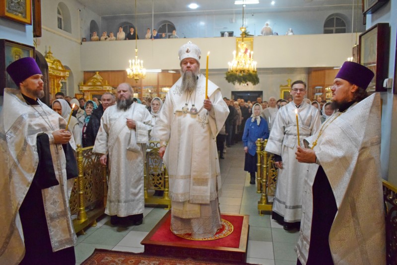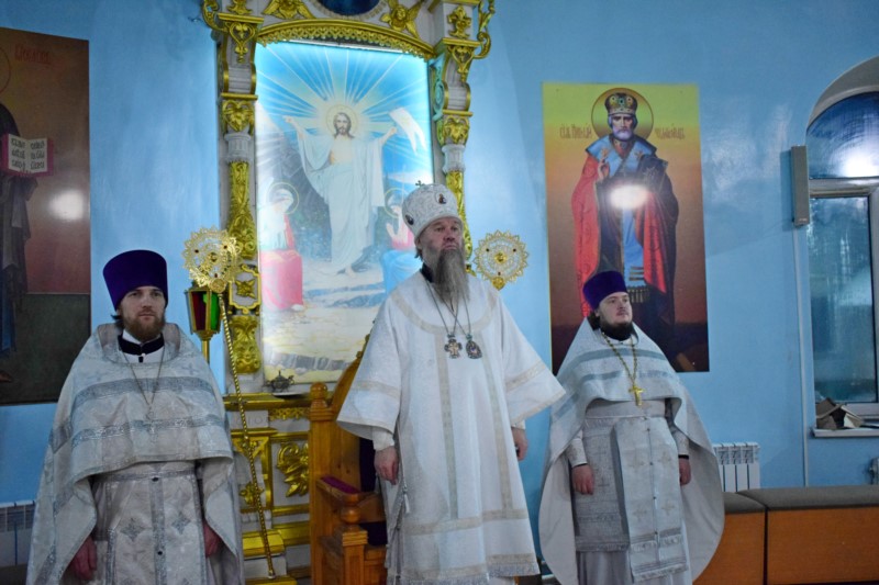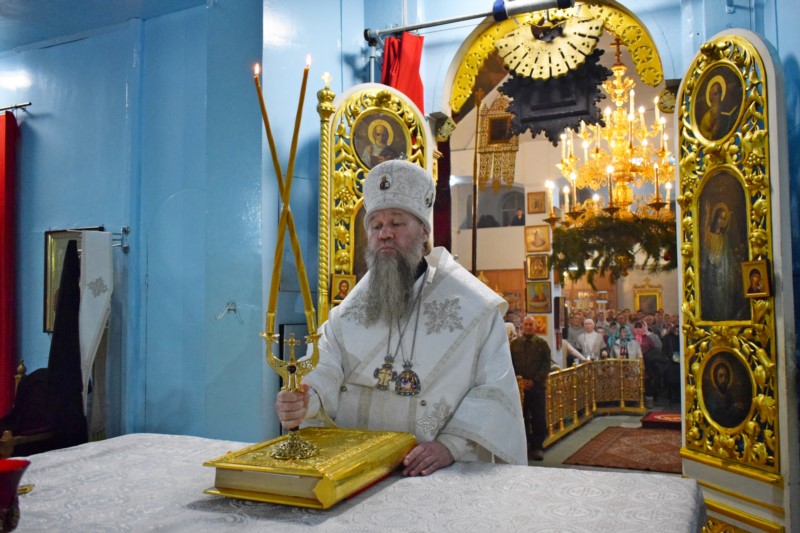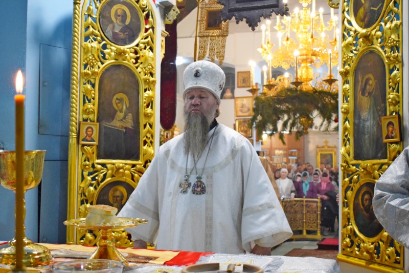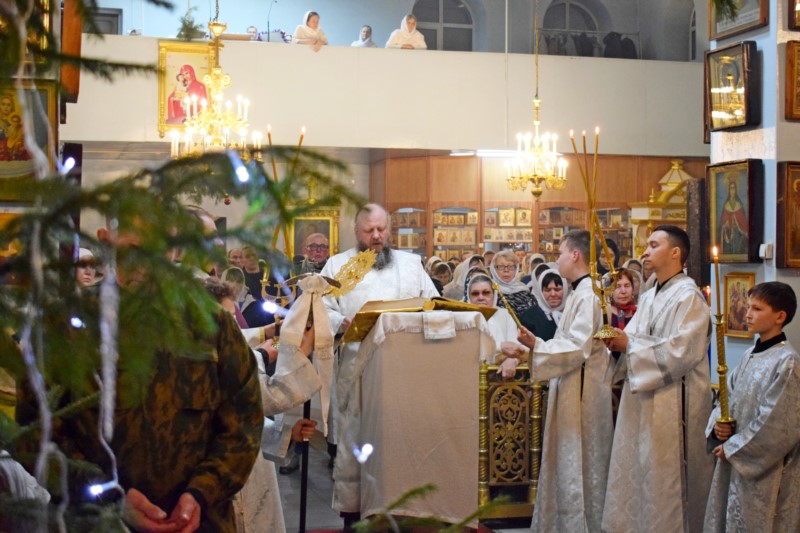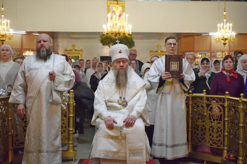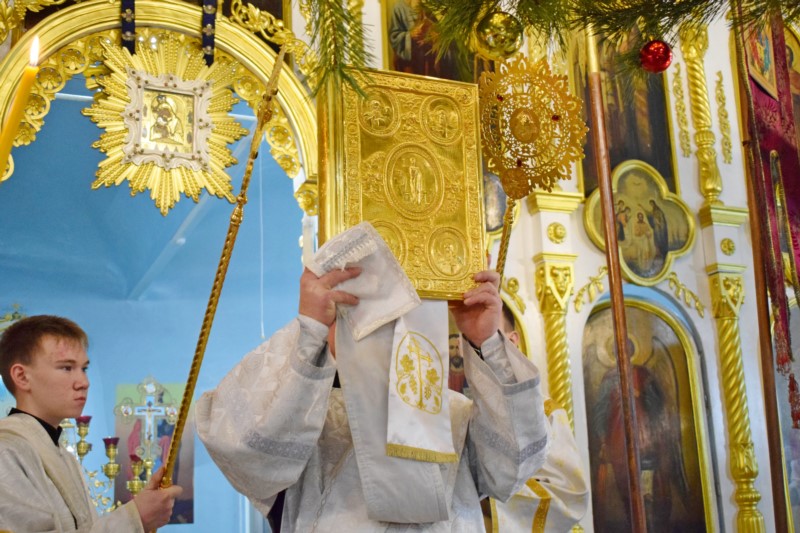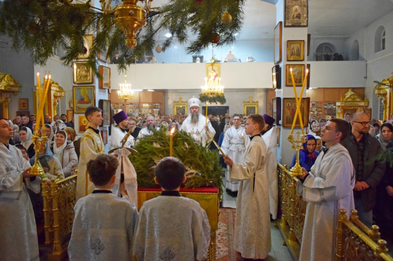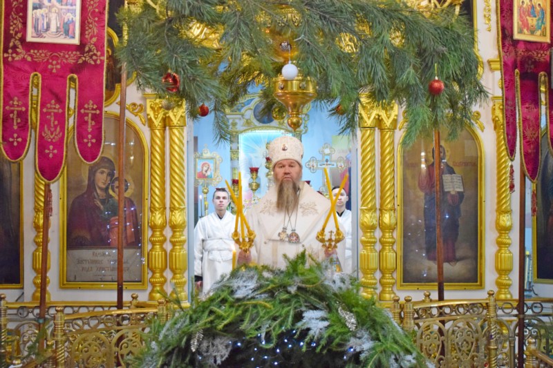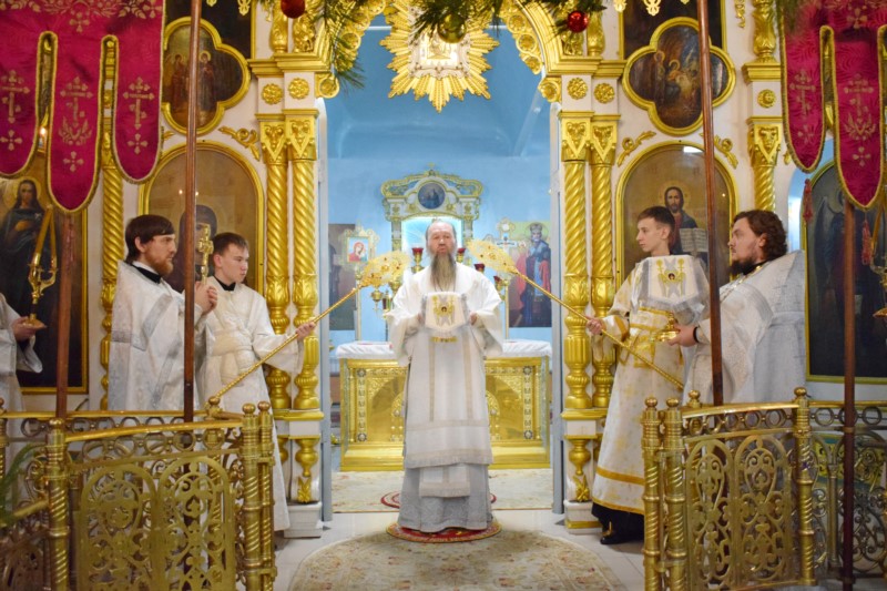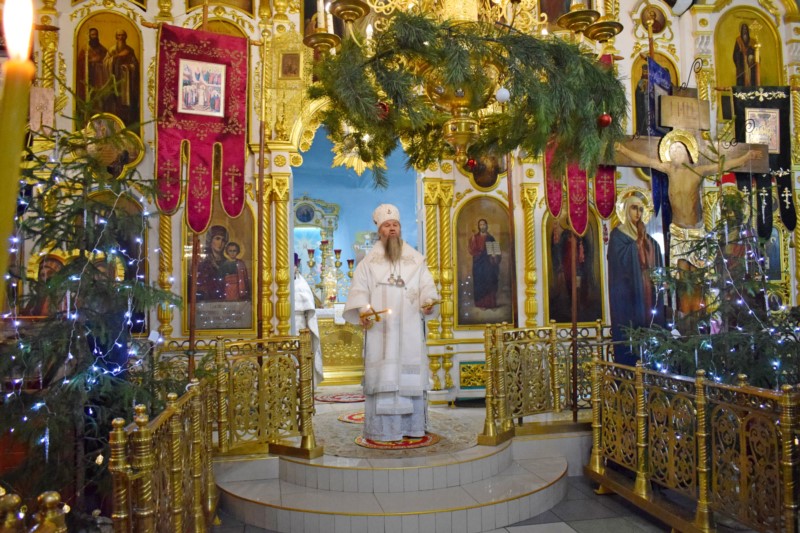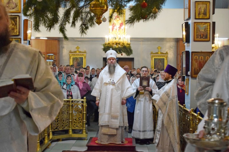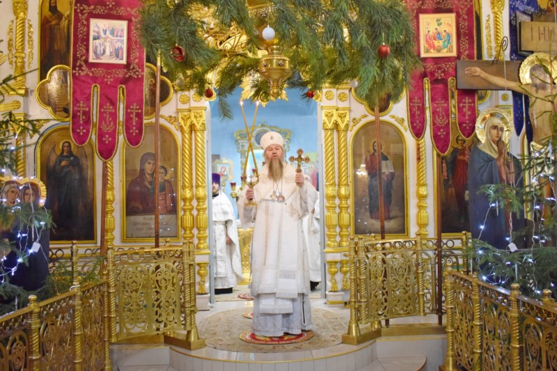 По окончании Литургии Его Преосвященство поздравил всех собравшихся на богослужение с великим двунадесятым праздником Рождества Христова.