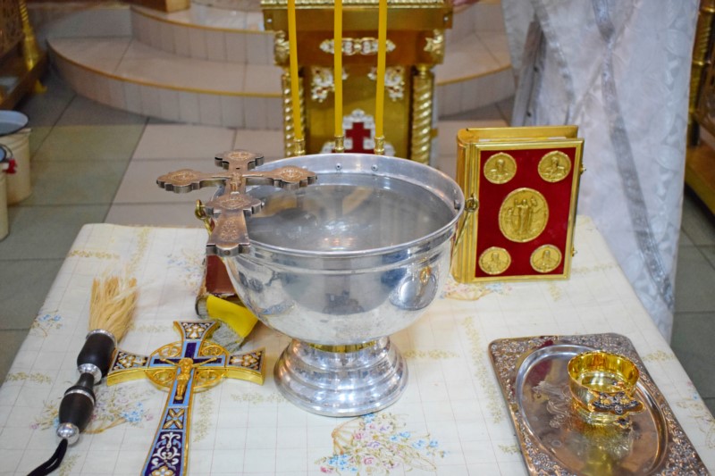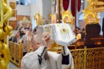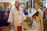 По заамвонной молитве при пении стихиры «Глас Господень на водах» священнослужители вышли в центр храма, где Преосвященнейший владыка совершил великое освящение воды.