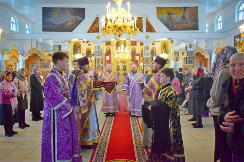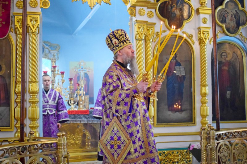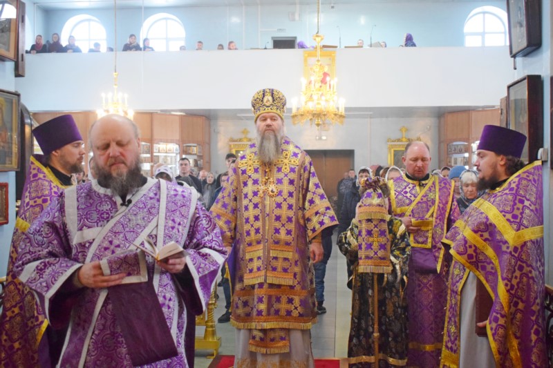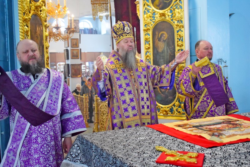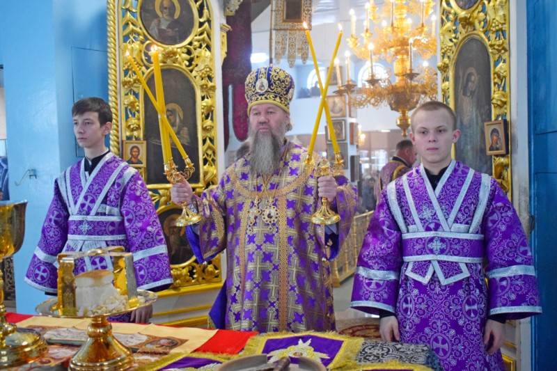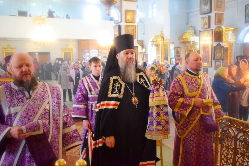 После отпуста Литургии Владыка в сослужении духовенства совершил молебный чин в Неделю Торжества Православия, на котором читались особые прошения и молитвы о единстве Христовой Церкви и непреложном стоянии людей в православной вере.