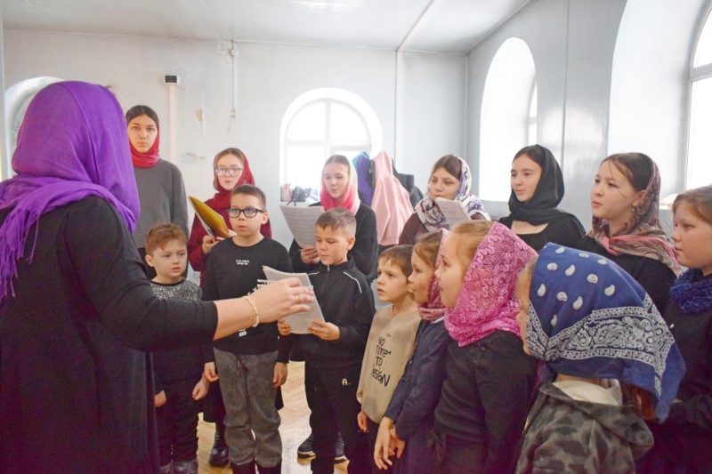Богослужебные песнопения исполнил Архиерейский хор и хор воспитанников воскресной школы кафедрального храма регент Вера Атаманенко.