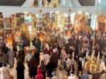 На середине храма перед святой Плащаницей священнослужители прочитали 17-ю кафизму с похвалами. После пения Великого славословия Плащаница была обнесена вокруг храма с пением погребального «Святый Боже...».