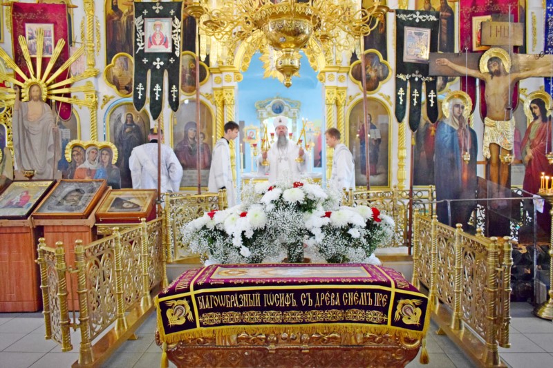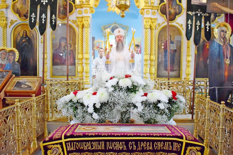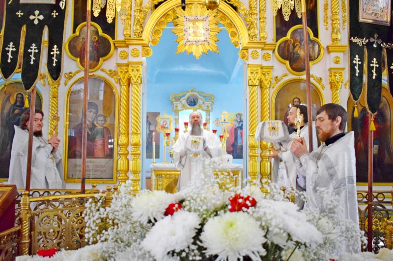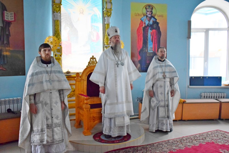 Правящему Архипастырю сослужили клирики кафедрального храма: благочинный I округа Канашского М.О протоиерей Серафим Атаманенко, заведующий канцелярией Канашской Епархии иерей Сергий Карсканов, иерей Георгий Павлов.