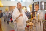 По заамвонной молитве владыка Стефан совершил освящение хлеба и вина.