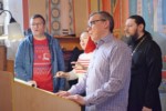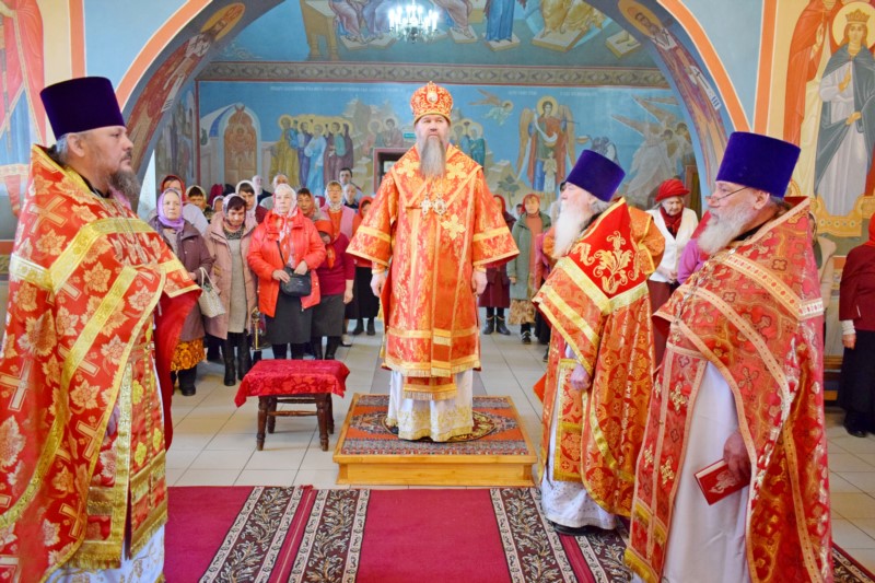 Затем Преосвященнейшего владыку приветствовал настоятель храма протоиерей Иоанн Николаев. Отец настоятель поблагодарил Его Преосвященство за богослужение и молитвы.