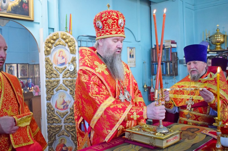 Затем Его Преосвященство поблагодарил отца настоятеля, за труды по окормлению прихода, поздравил со Светлым праздником Пасхи Христовой и преподал Архипастырское благословение.