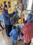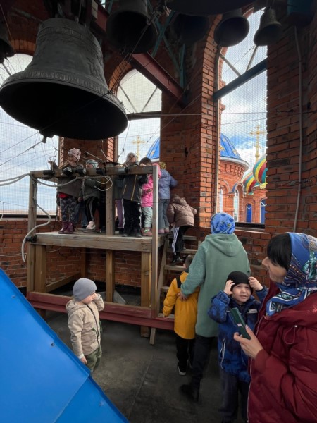 Дети с восхищением осмотрели убранство храма, побывали на хорах, а затем поднялись на колокольню. Под руководством батюшки они рассмотрели колокола и поочерёдно ударили в них — торжественный звон разнёсся по округе, а малыши сияли от счастья.