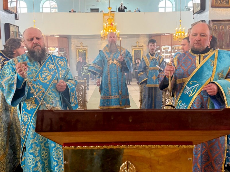 В пятницу 5-й седмицы Великого Поста епископ Стефан совершил утреню с чтением Акафиста Пресвятой Богородице в кафедральном храме святителя Николая г. Канаш